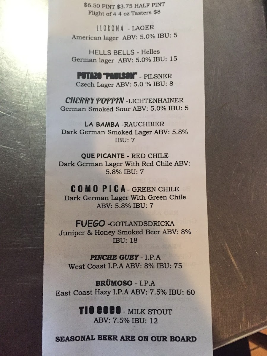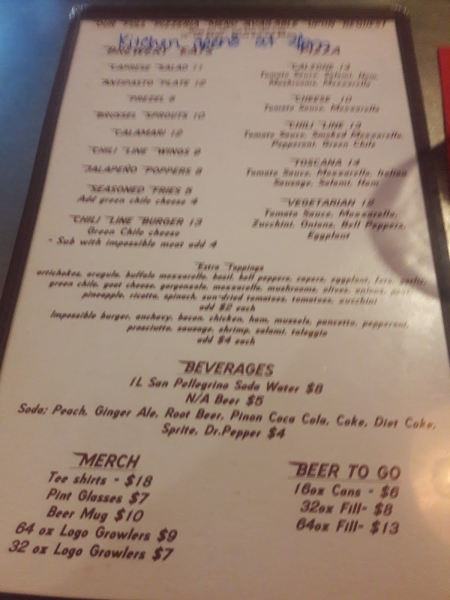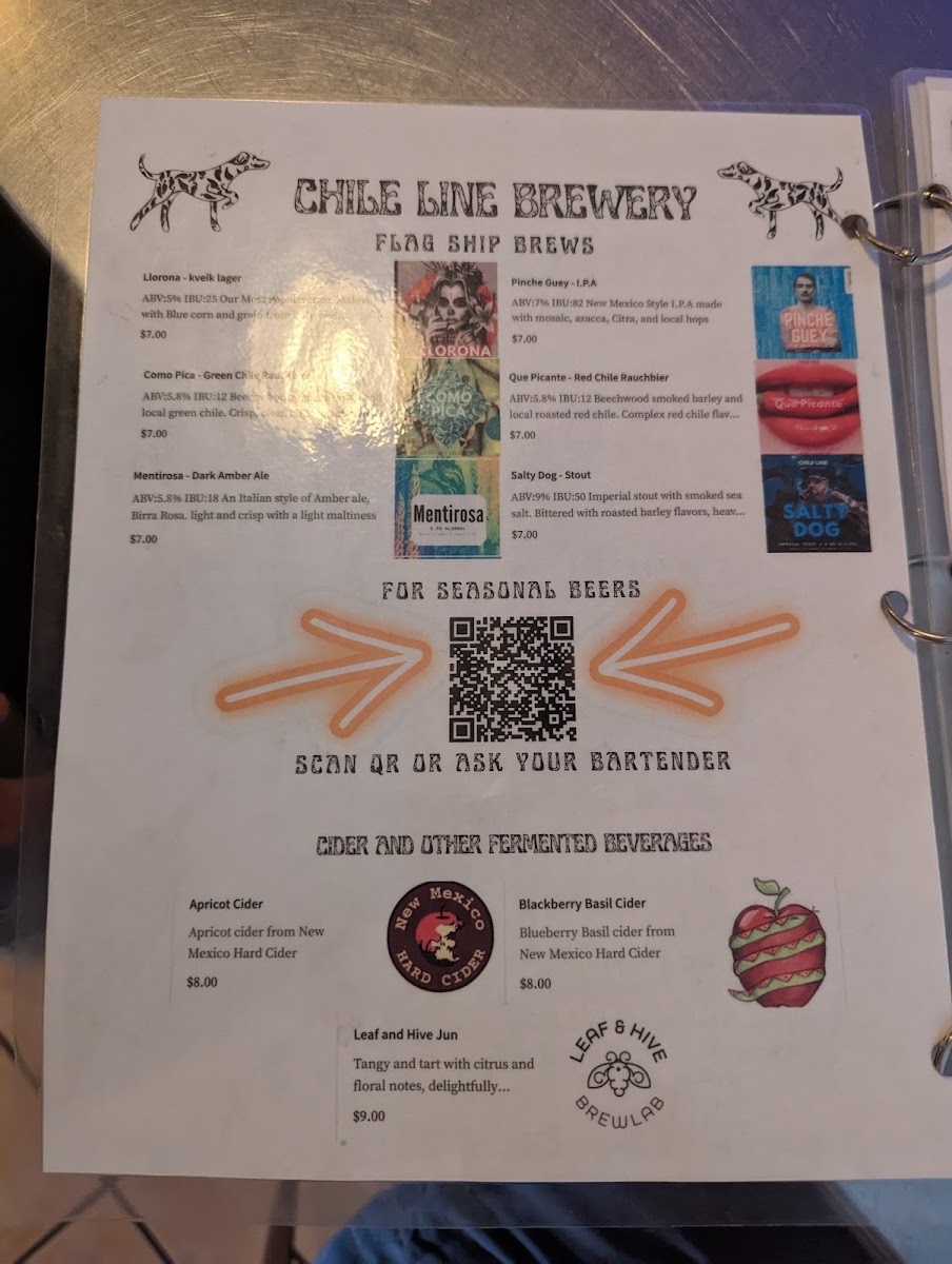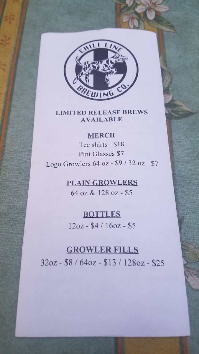 Chile Line Brewery Menu